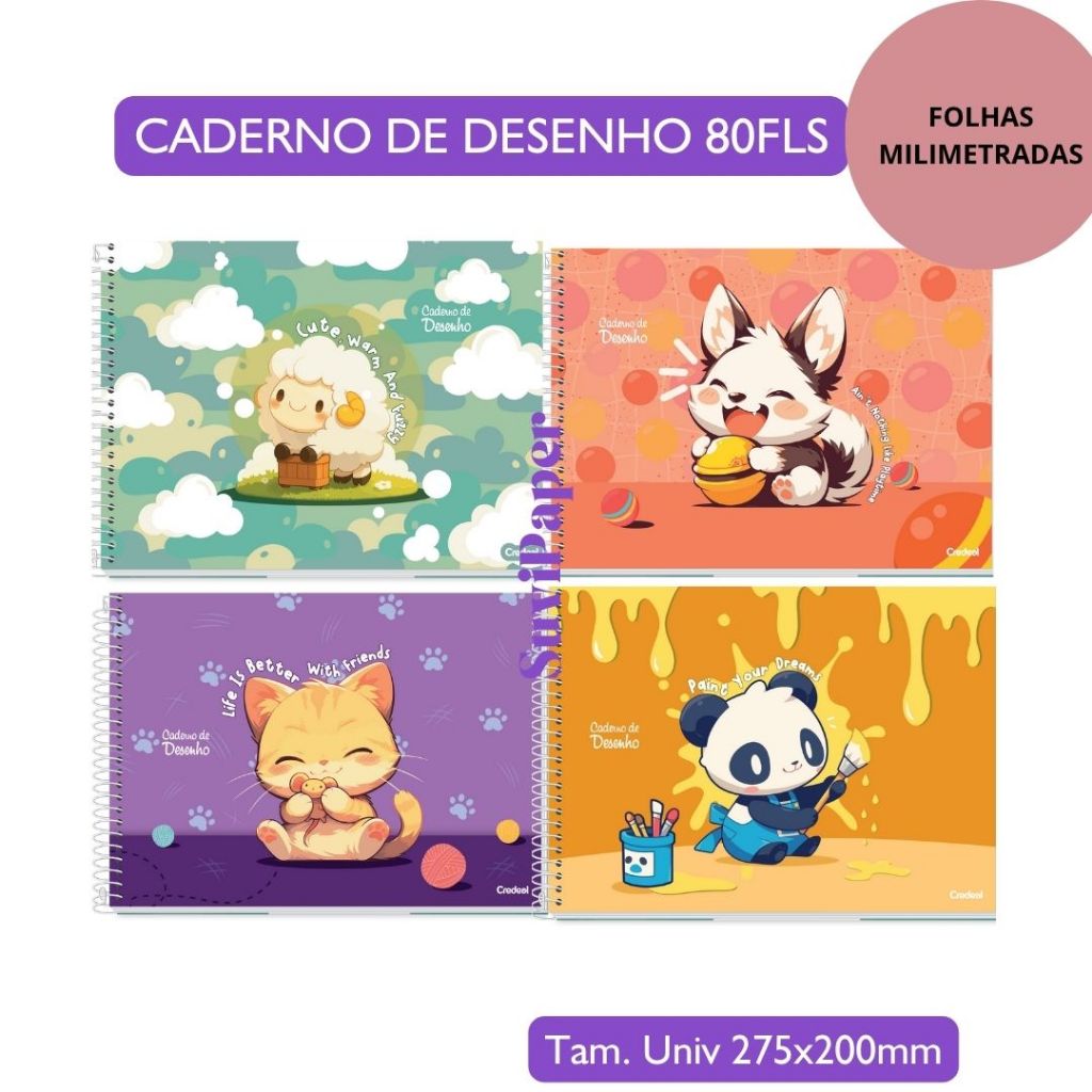 Dê mais precisão e charme aos seus desenhos com o Caderno de Desenho Lala Pets – Credeal, agora com folhas milimetradas, perfeito para quem ama desenhar, treinar técnicas ou criar layouts com mais organização!