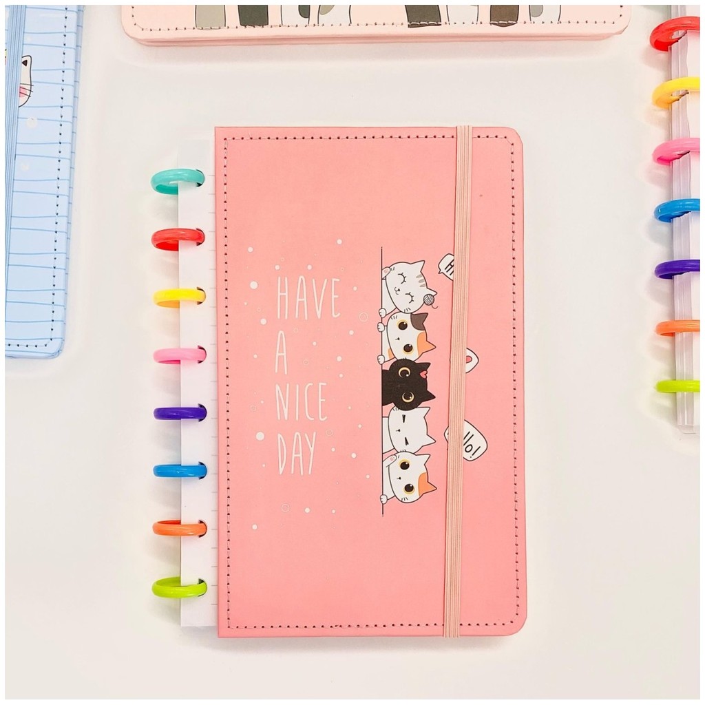 - Sistema de discos: acrescente, remova ou reorganize suas folhas com facilidade — seu caderno se adapta ao que você precisa.