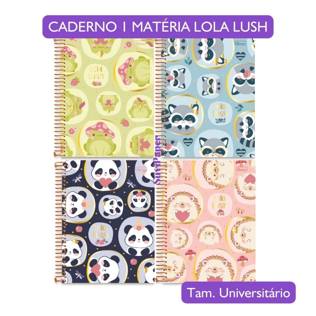 Animaizinhos super charmosos esperam você nos cadernos universitários da linha Lola Lush! Ele possui diferenciais como, bolsa portfólio, cartela de adesivos, editorial, espiral dourado e muito mais.
