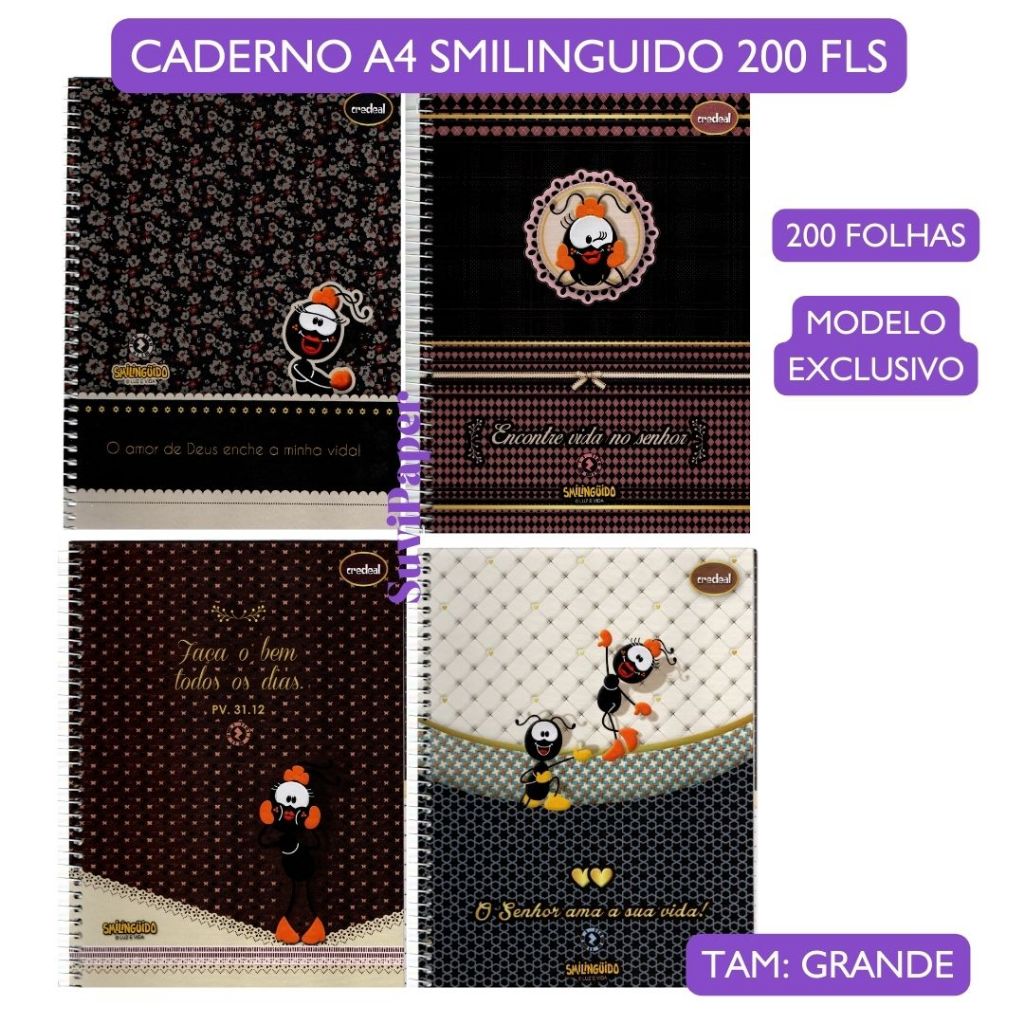 Com 200 folhas, é um caderno robusto e de tamanho grande (A4), perfeito para uso acadêmico, diário espiritual ou para quem deseja guardar uma peça rara da linha Faniquita e Smilingüido.