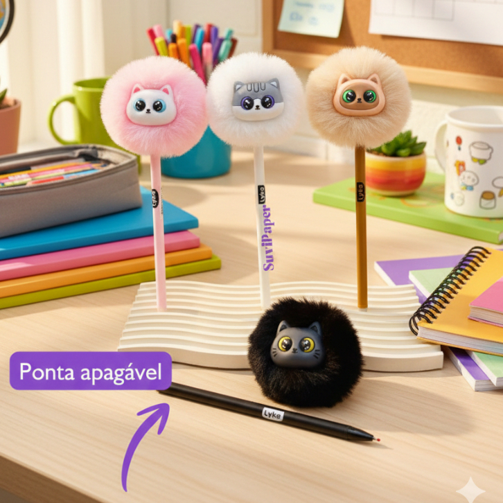 Apaixonados por gatos e papelaria criativa, preparem o coração! A Caneta Gel Apagável Gatinho da Lyke é o acessório que faltava para deixar seu dia a dia mais fofo e suas anotações impecáveis. Com um design "pet friendly" e um pompom super macio, ela é a combinação perfeita de estilo e utilidade.
