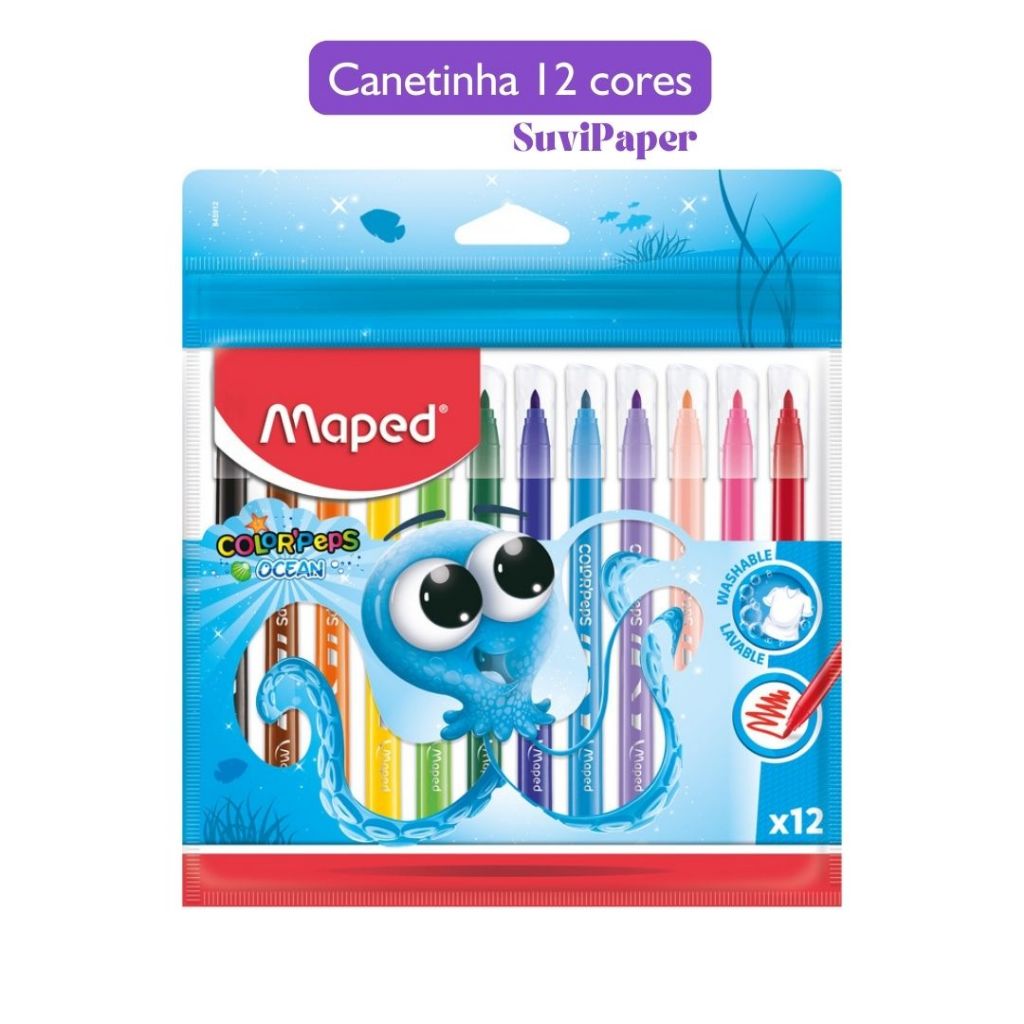 Canetinha de feltro Ocean com tinta lavável. Desde desenhar em casa até colorir na escola, estas canetinhas de feltro brilhantes acompanharão seu filho em todas essas atividades criativas! As Canetinhas de feltro Ocean da linha Color’Peps têm uma ponta resistente e cores vibrantes. Elas são facilmente laváveis em tecidos ou na pele.