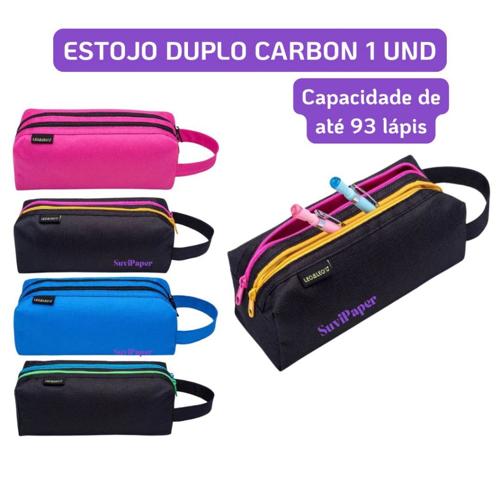 Organize seus materiais com estilo e praticidade! O Estojo Duplo Retangular Carbon da Leo&Leo é a escolha ideal para quem precisa de muito espaço e não abre mão da organização. Com um design moderno e funcional, ele foi pensado para estudantes e profissionais que carregam uma grande variedade de itens.
