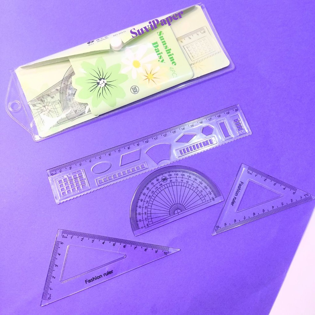 Prepare-se para o novo ano escolar com este conjunto prático e fofo de materiais de escritório! O set inclui uma réguade 15cm, duas réguas triangular e um transferidor, perfeito para desenhos e trabalhos escolares. Feito com materiais de alta qualidade, este conjunto é ideal para estudantes de todas as idades.