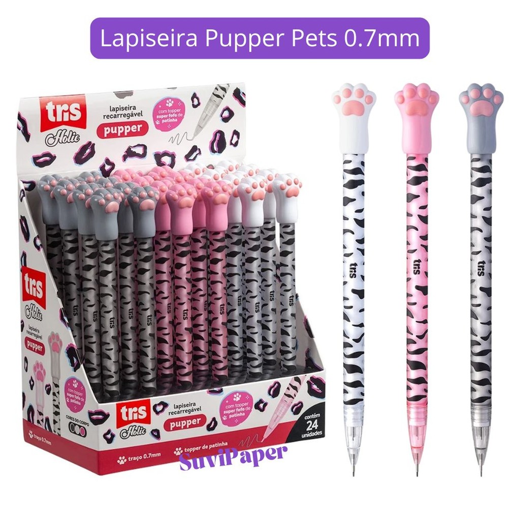 Traço 0,7mm e topo em formato de patinha de gato. Com 4 opções de cores e estampas, é perfeita para estudantes e escritores que buscam um toque de diversão em suas atividades diárias.
