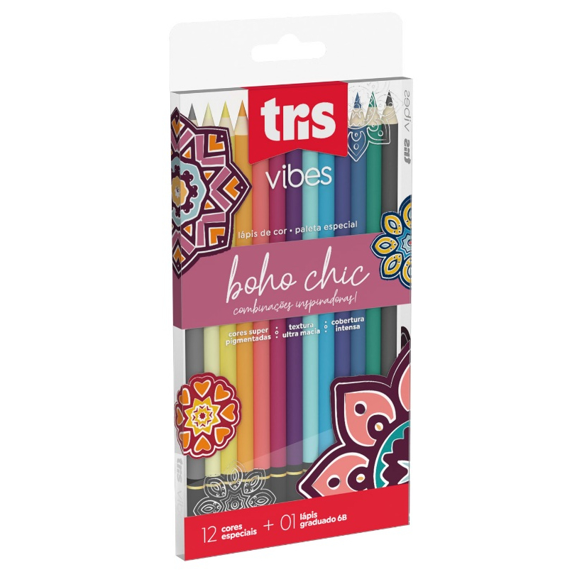 Lápis de Cor Vibes Boho com 12 Cores - Tris