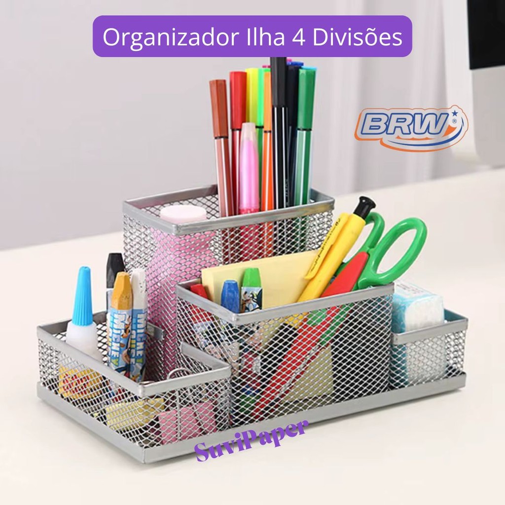 Divisórias: 4 compartimentos para separar e organizar seus itens de escritório.
